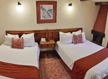Habitaciones con 2 camas matrimoniales o con 1 cama king size, baño completo, chimenea y balcón.