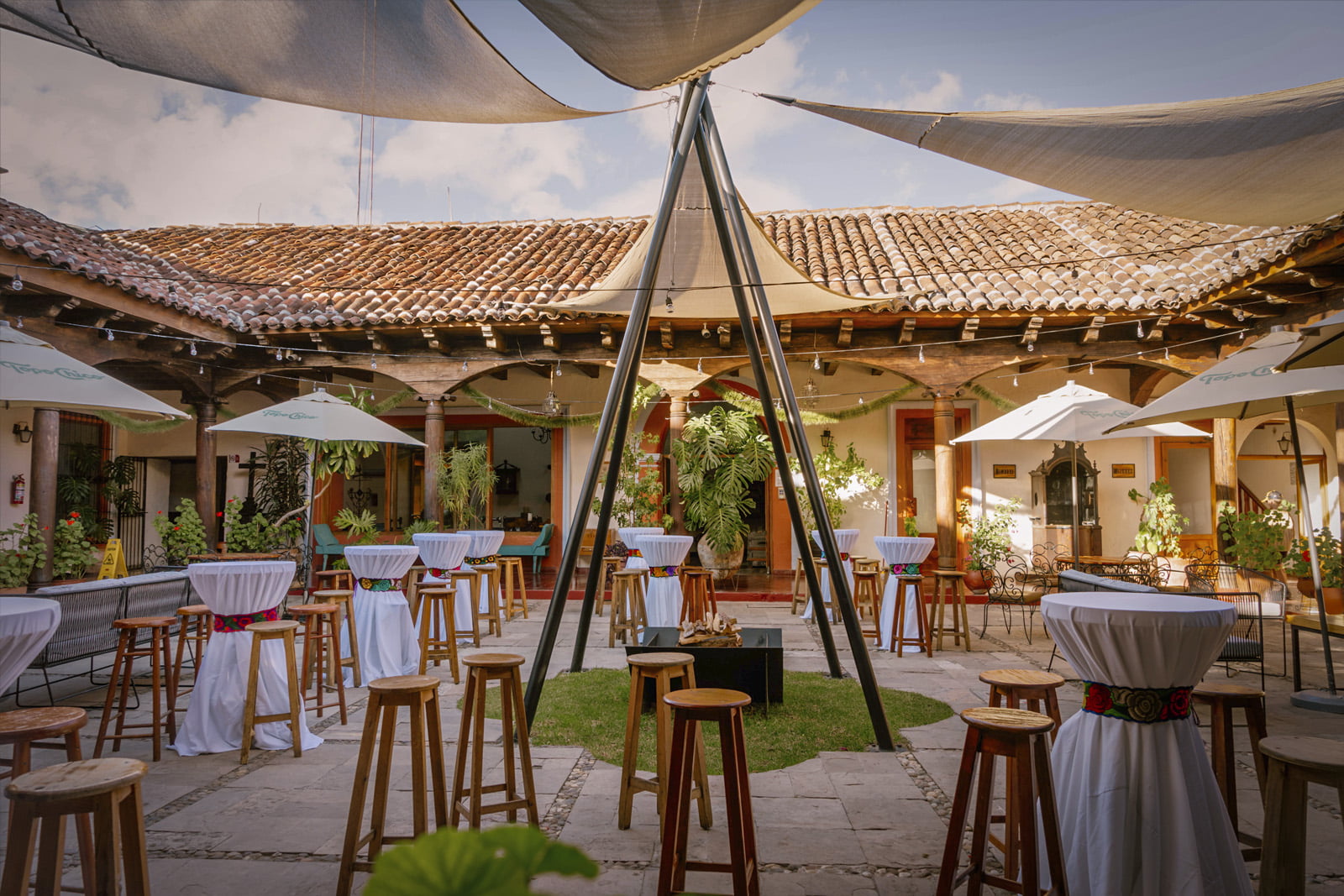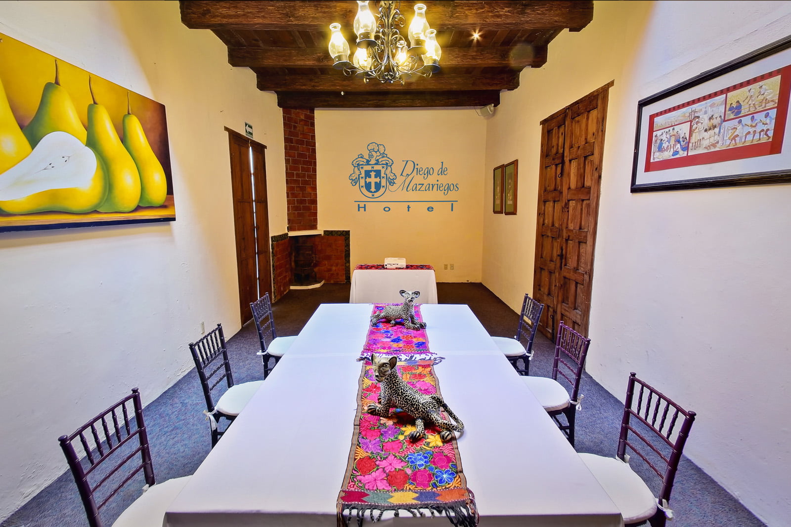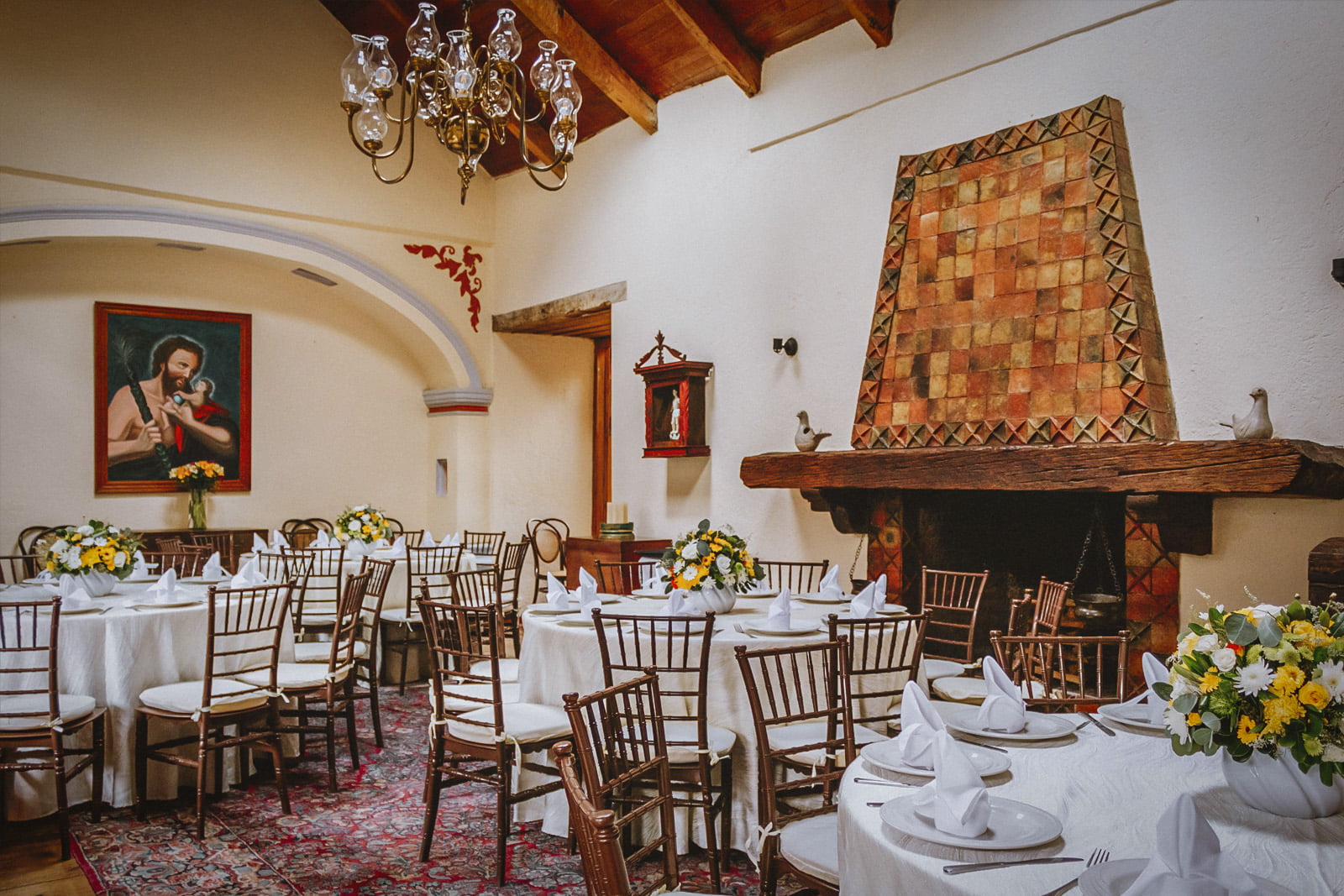 Photo Gallery GalleryTradition, comfort and warmth in every cornerAllHotelEvent HallsRestaurantEventsFachadaCentral CourtyardAncient Event HallRestaurante El ConquistadorBodaPasillosQuetzal Event HallMural del RestauranteBodaJardínSalón VirreynalRestaurante El ConquistadorMontajeMural MayaExecutive Event HallMontajePrivate parkingMontajeFuenteMontaje NavidadRecepción