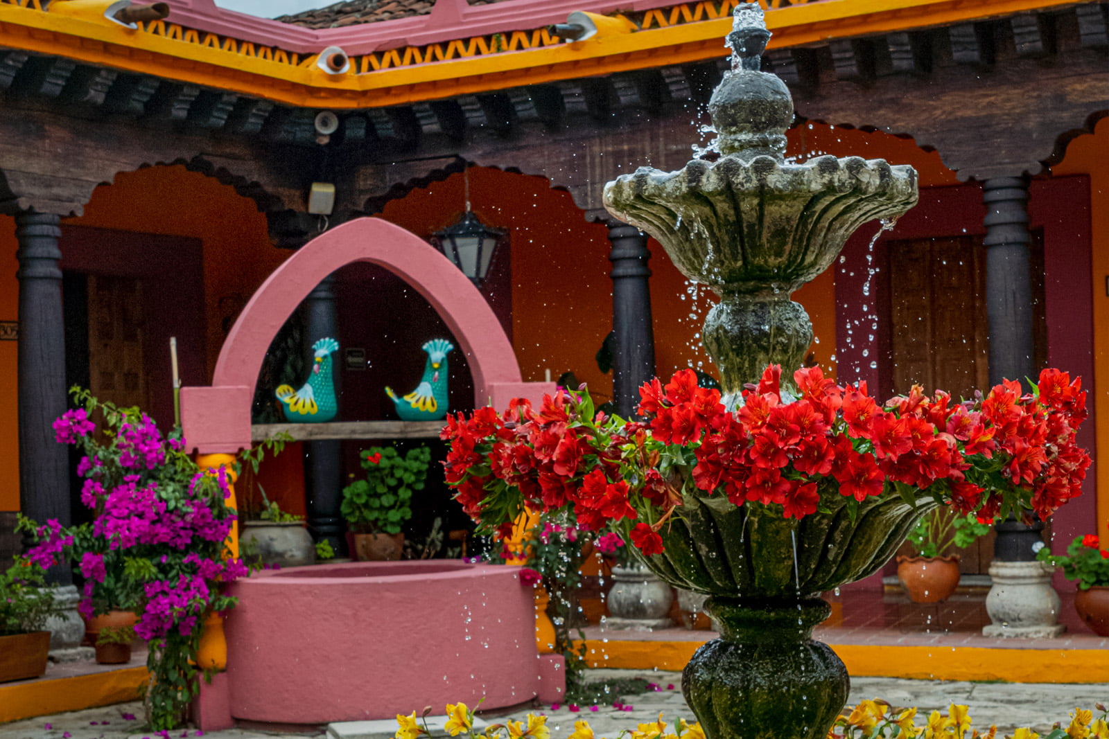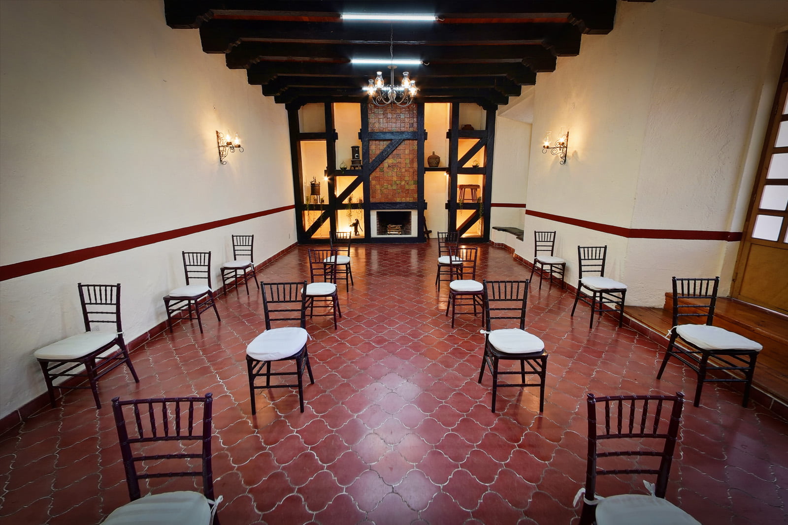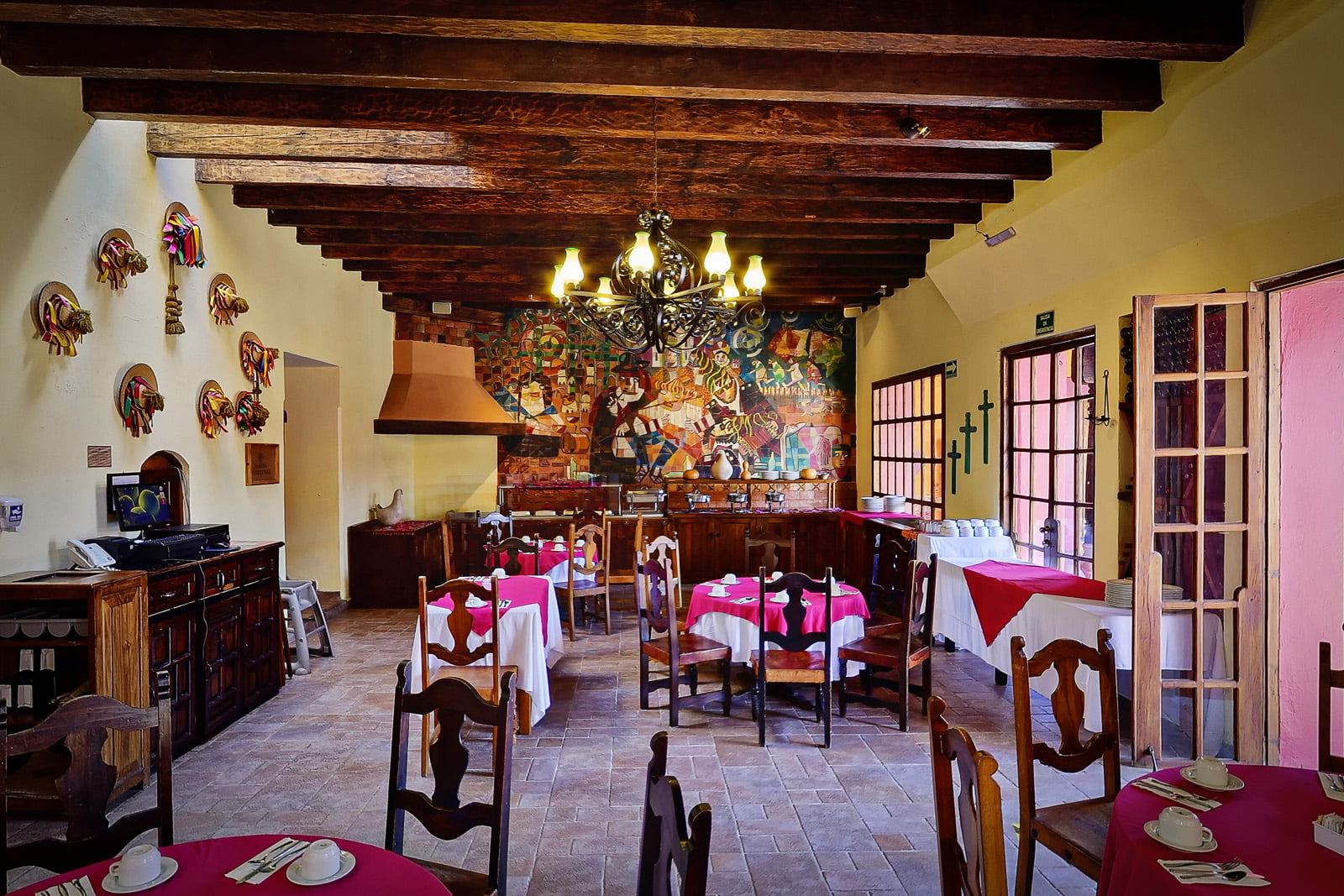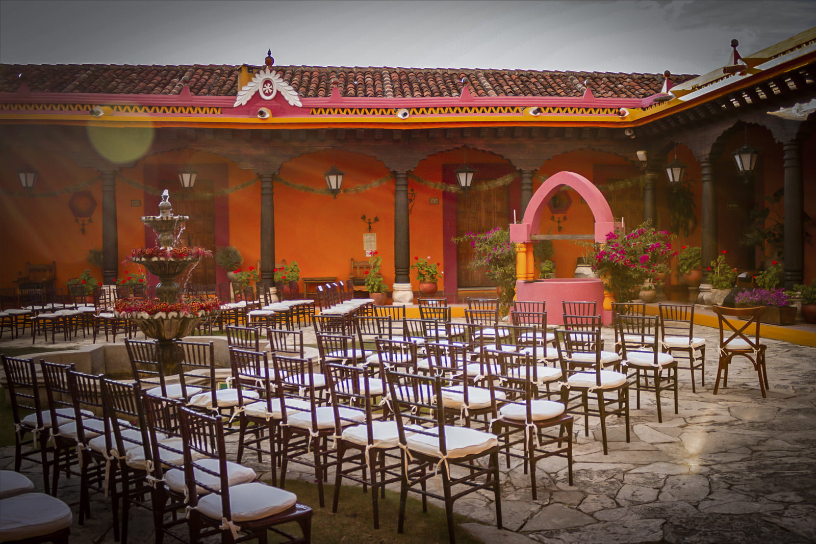 Photo Gallery GalleryTradition, comfort and warmth in every cornerAllHotelEvent HallsRestaurantEventsFachadaCentral CourtyardAncient Event HallRestaurante El ConquistadorBodaPasillosQuetzal Event HallMural del RestauranteBodaJardínSalón VirreynalRestaurante El ConquistadorMontajeMural MayaExecutive Event HallMontajePrivate parkingMontajeFuenteMontaje NavidadRecepción